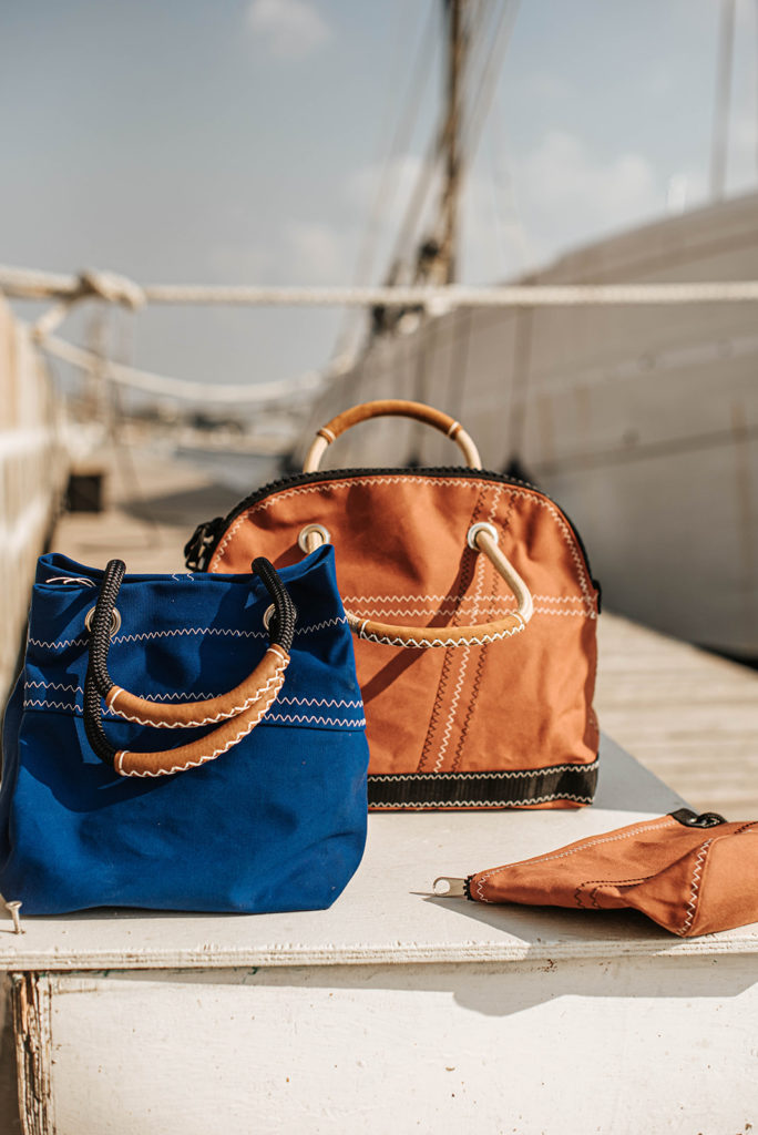 Vent de Voyage présente ses créations uniques de sacs et d'accessoires de voile, ainsi que des décorations fabriquées à partir de voiles de bateau recyclées.